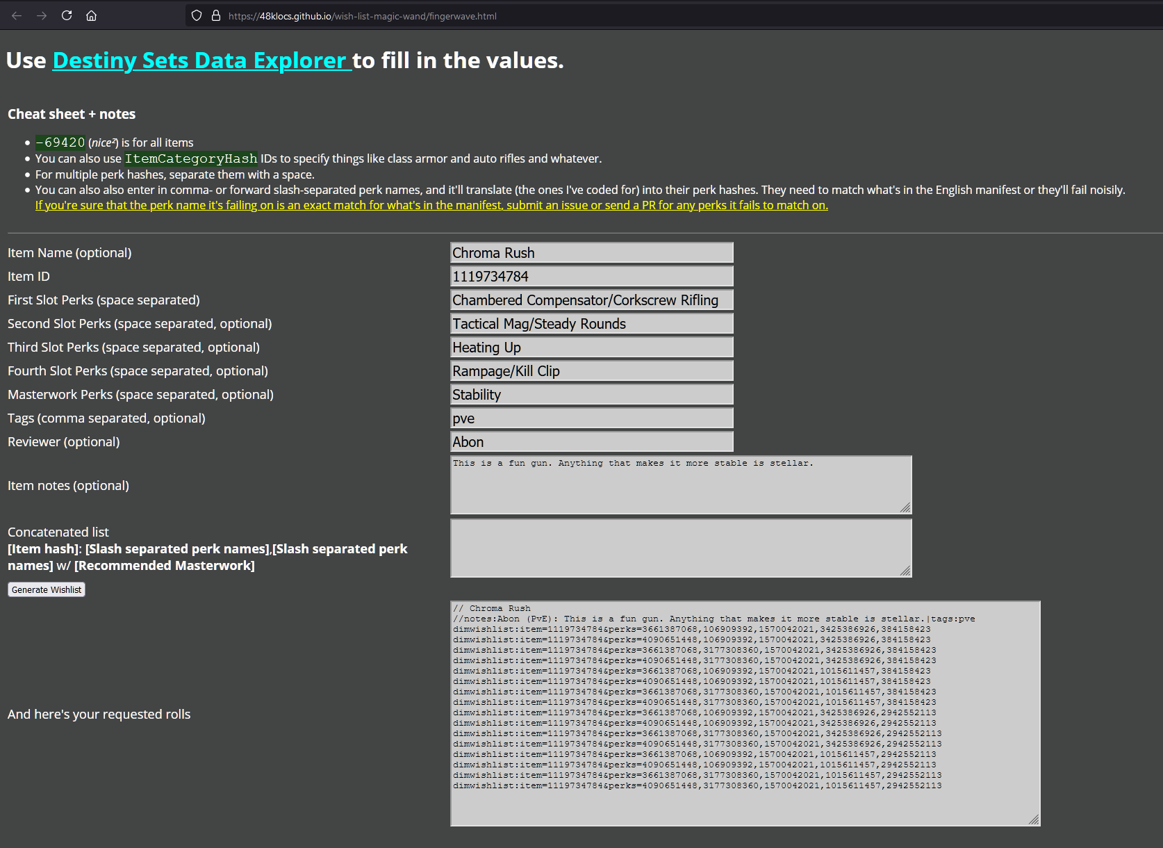 How to generate your own Destiny Item Manager (DIM) wish list so that you can chase your dream rolls.