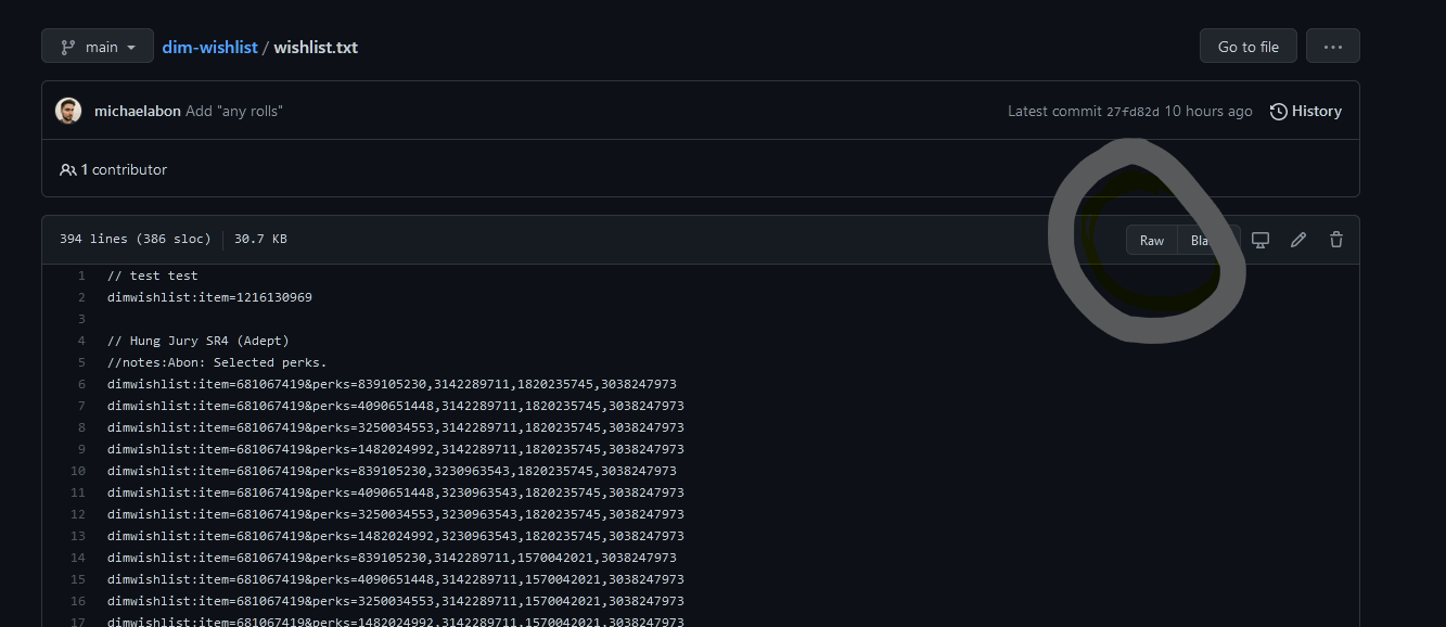 https://raw.githubusercontent.com/michaelabon/dim-wishlist/main/wishlist.txt. -